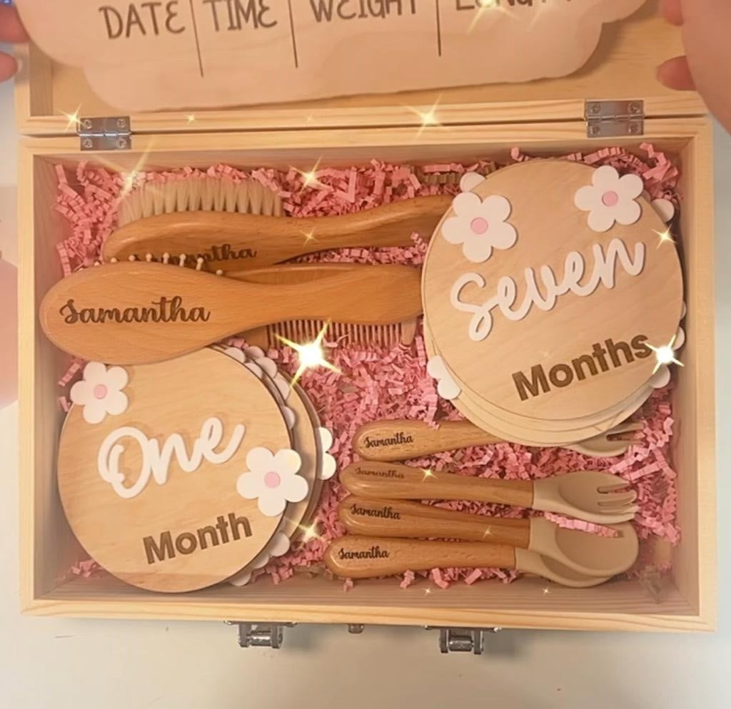Enhance your nursery decor with our personalized baby keepsake box. This engraved memory box serves as a cherished memento, perfect for commemorating the arrival of a newborn. An ideal choice for a unique baby memory box or a thoughtful baptism gift.